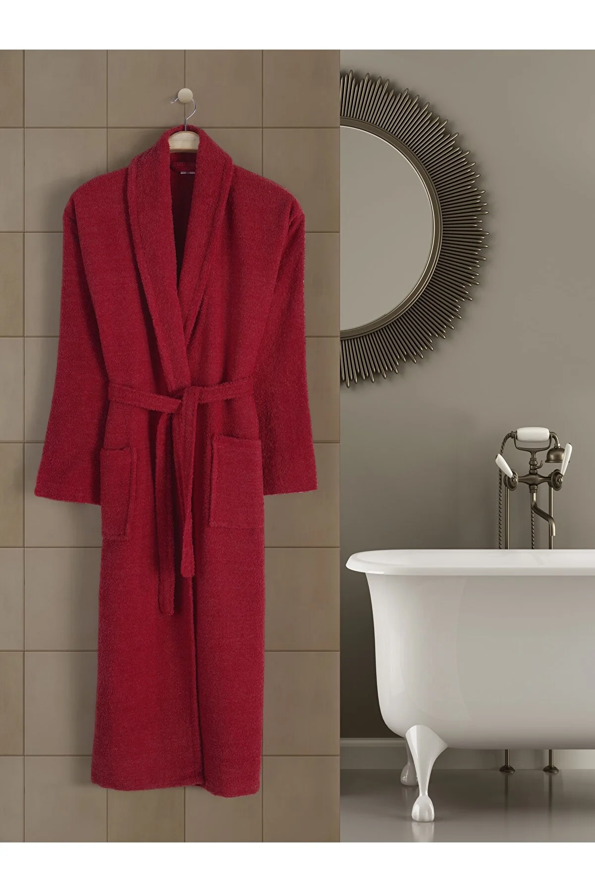 Halatul de baie Premium ROSU este alegerea perfectă pentru confort zilnic după duș, saună sau baie. Realizat din bumbac 100% de calitate superioară, absoarbe rapid apa și oferă o senzație plăcută și călduroasă pe piele