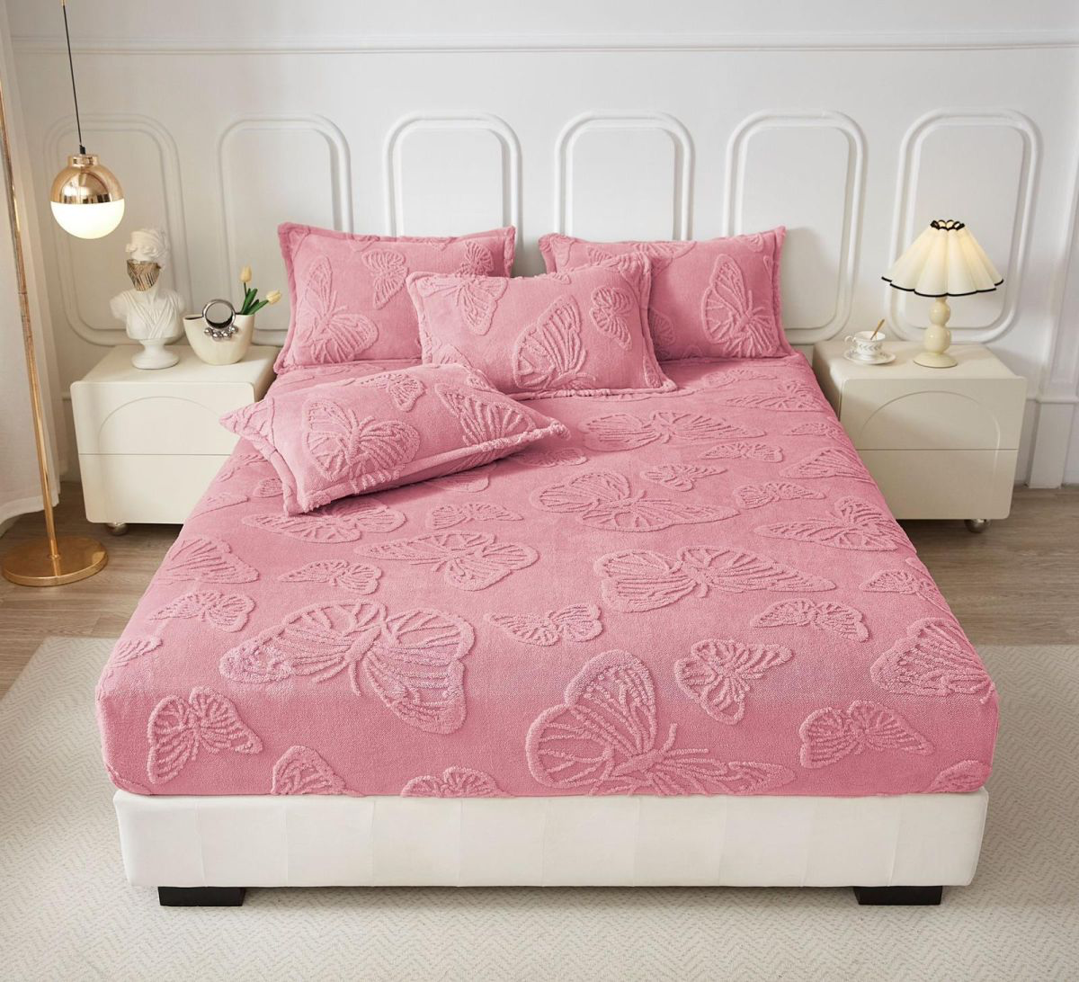 Această husă de pat Cocolino în nuanță de roz pudrat este confecționată din material gros, pufos și foarte călduros, ideal pentru sezonul rece sau pentru un plus de confort în orice dormitor. Modelul cu fluturi reliefați (embosat) oferă un aspect elegant și modern, păstrând în același timp simplitatea unui design rafinat.