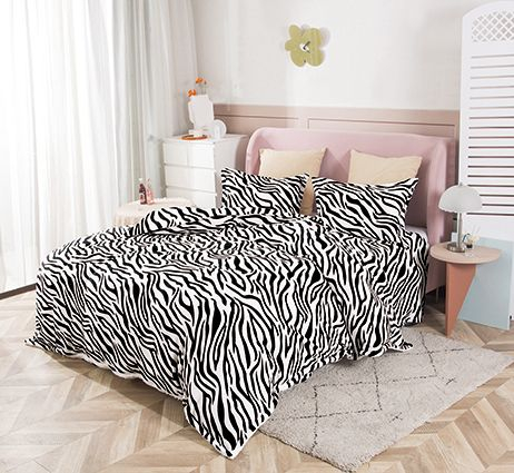 Textura catifelată oferă un confort deosebit, iar designul zebra alb-negru, modern și îndrăzneț, adaugă personalitate și stil dormitorului. Contrastul puternic face ca lenjeria să iasă imediat în evidență, fiind ideală pentru interioare moderne.