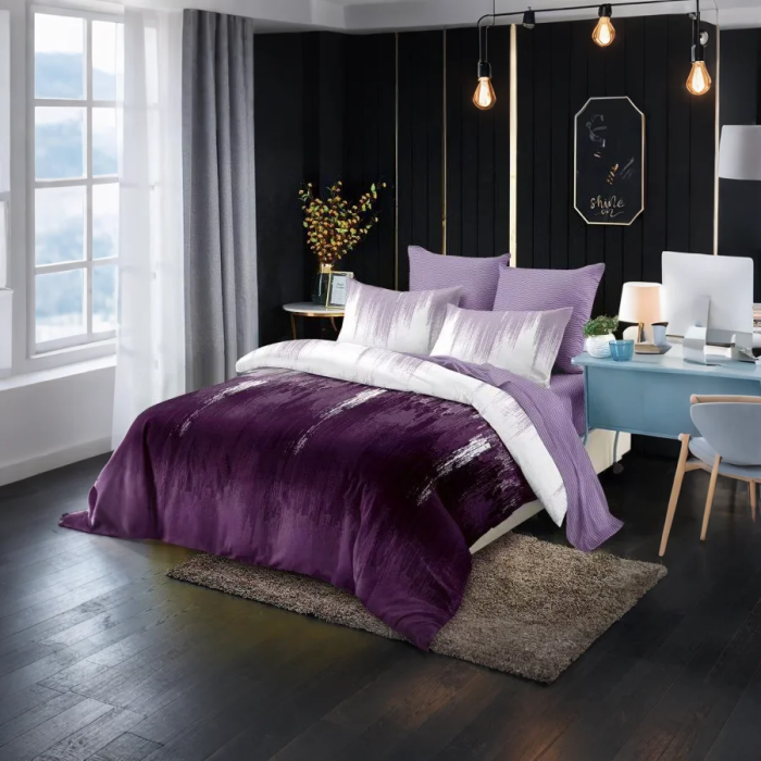 Lenjerie de Pat Dublu FINET cu Elastic – 6 Piese – Mov Imperial