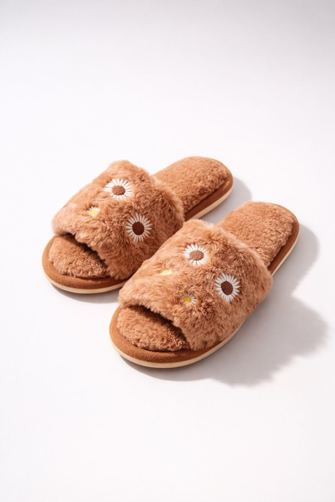 Bucură-te de confortul absolut acasă cu acești papuci de casă pufoși cu model margarete. Realizați din material moale și călduros, acești papuci sunt perfecți pentru zilele reci și pentru momentele de relaxare.