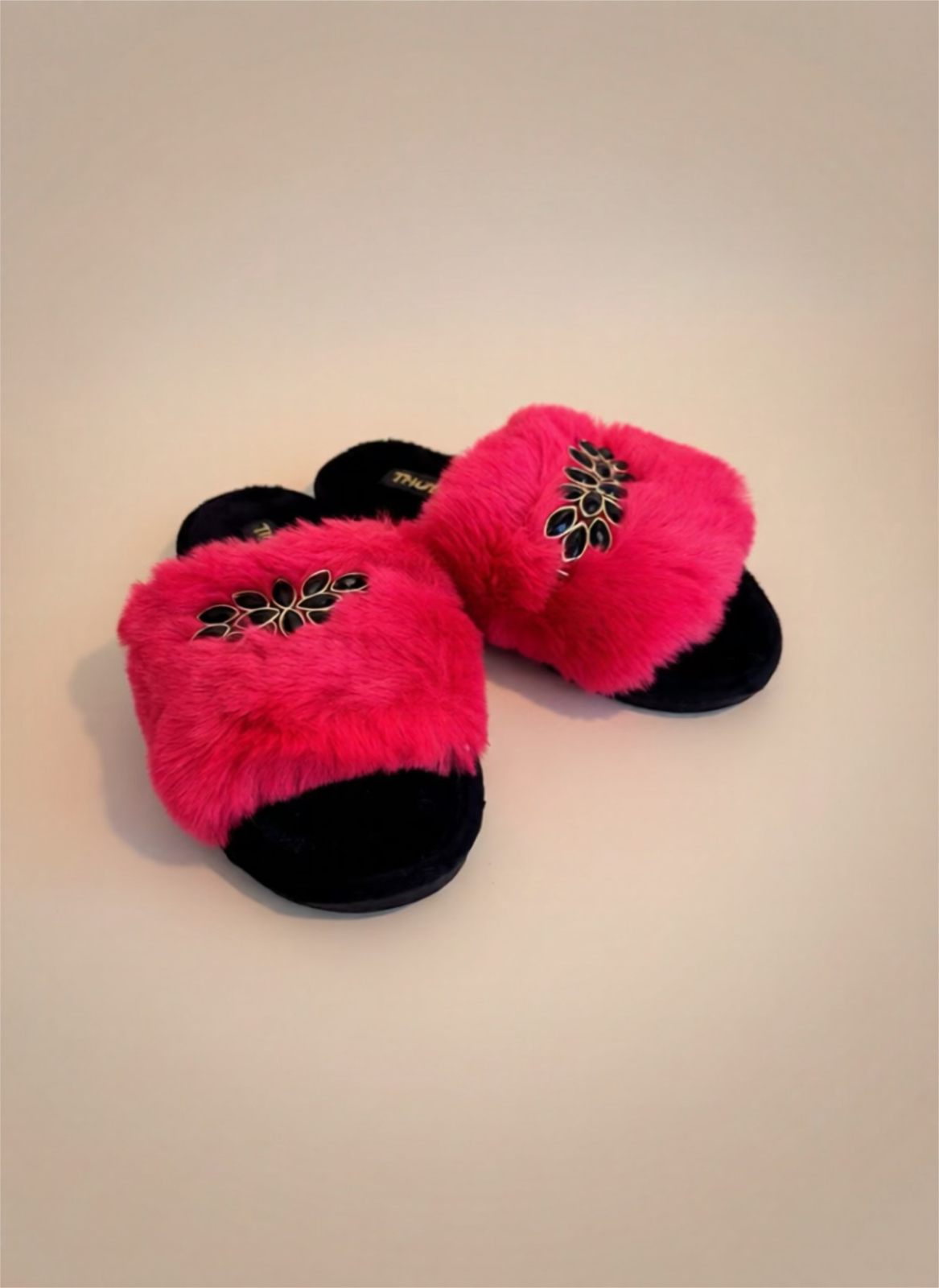 Papuci damă roșii cu blăniță și pietre decorative – Glam Cozy