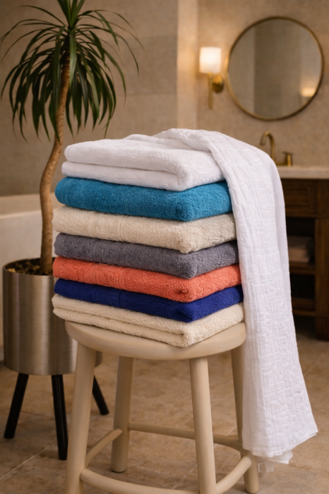 Materialul de calitate superioară este moale, plăcut la atingere și delicat cu pielea, asigurând o uscare rapidă și eficientă. Prosoapele sunt rezistente la spălări repetate și își păstrează textura și culorile în timp.